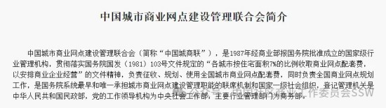 1987年,为解决计划经济时期城市商业配套短缺问题,国务院牵头成立了“中国城市商业网点建设管理联合会”,由商业部副部长担任会长。职能重心是“建设管理”四个字,7%的城市商业配套费统一征收使用,用于完善城市的商业功能配套与布局,最终在1995年,粮油布等各种票证完全彻底的退出历史舞台。