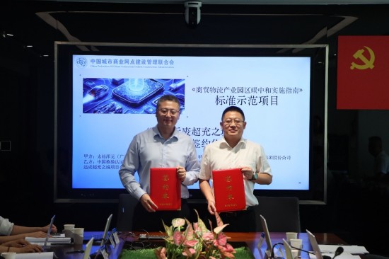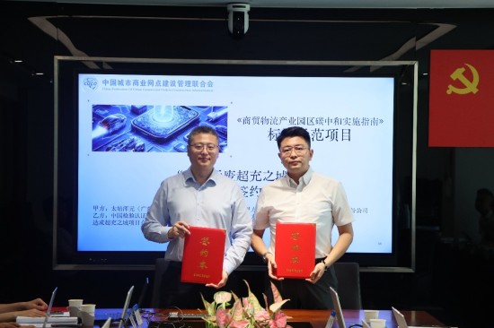 大会同期举行《商贸物流产业园区碳中和实施指南》标准示范项目(零碳无废超充之城)框架合作签约仪式,太始浑元(广东)能源控股集团股份公司与中检集团深圳公司达成项目合作意向开展全过程质量飞检、设备验证、碳核查、ESG与标准咨询合作,为示范项目提供权威质量与合规保障。